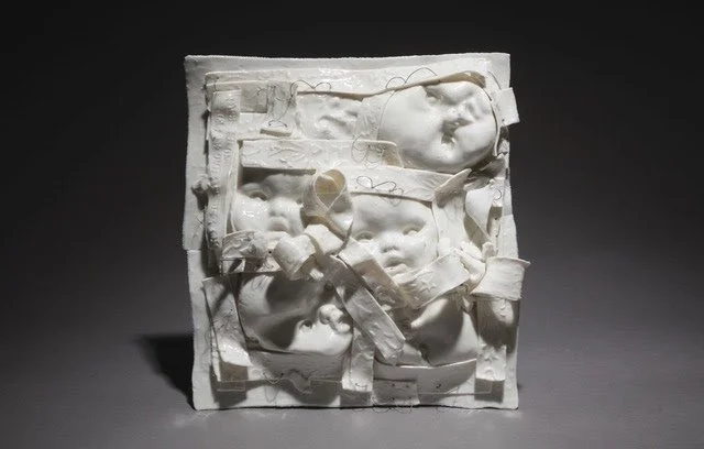 Inge Roberts, Bojagi Speak. Materials: clear glazed porcelain and wire. 9" x 9" x 2"